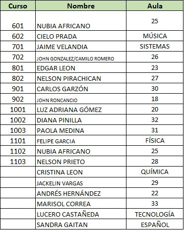 DOCENTES Y DIRECCIONES DE GRUPO